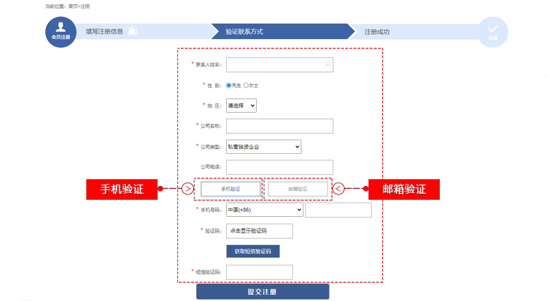填寫聯(lián)系人信息及驗證