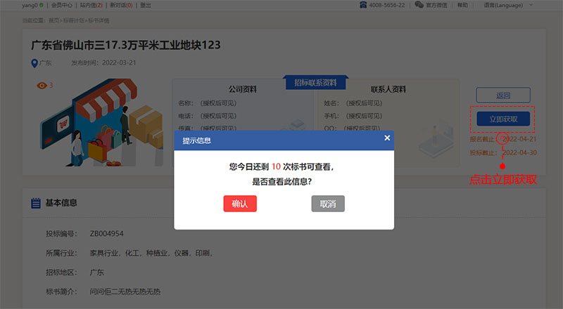 點擊“立即獲取”按鈕
